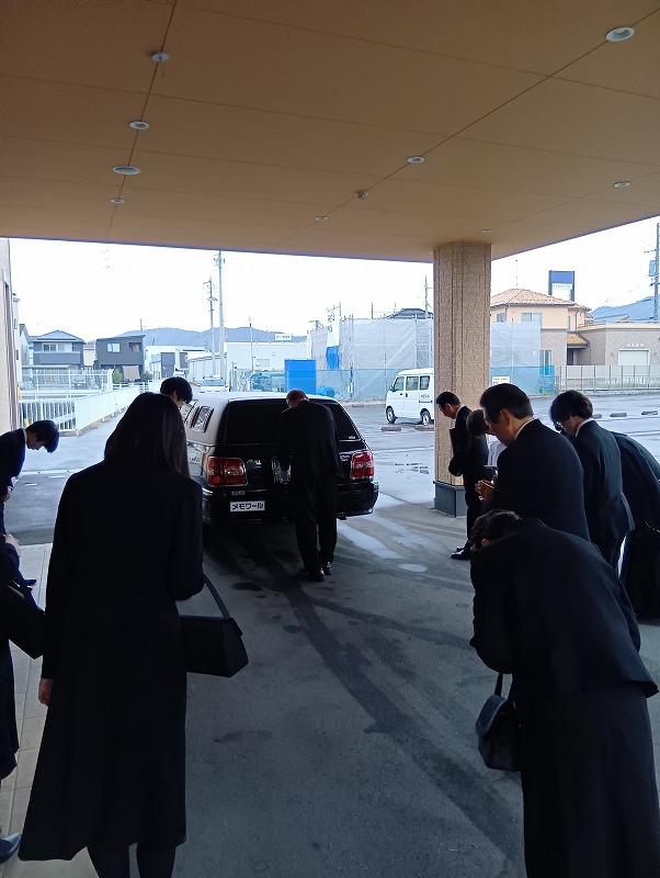 お孫さんたちにお手添えいただき霊柩車へと向かいます