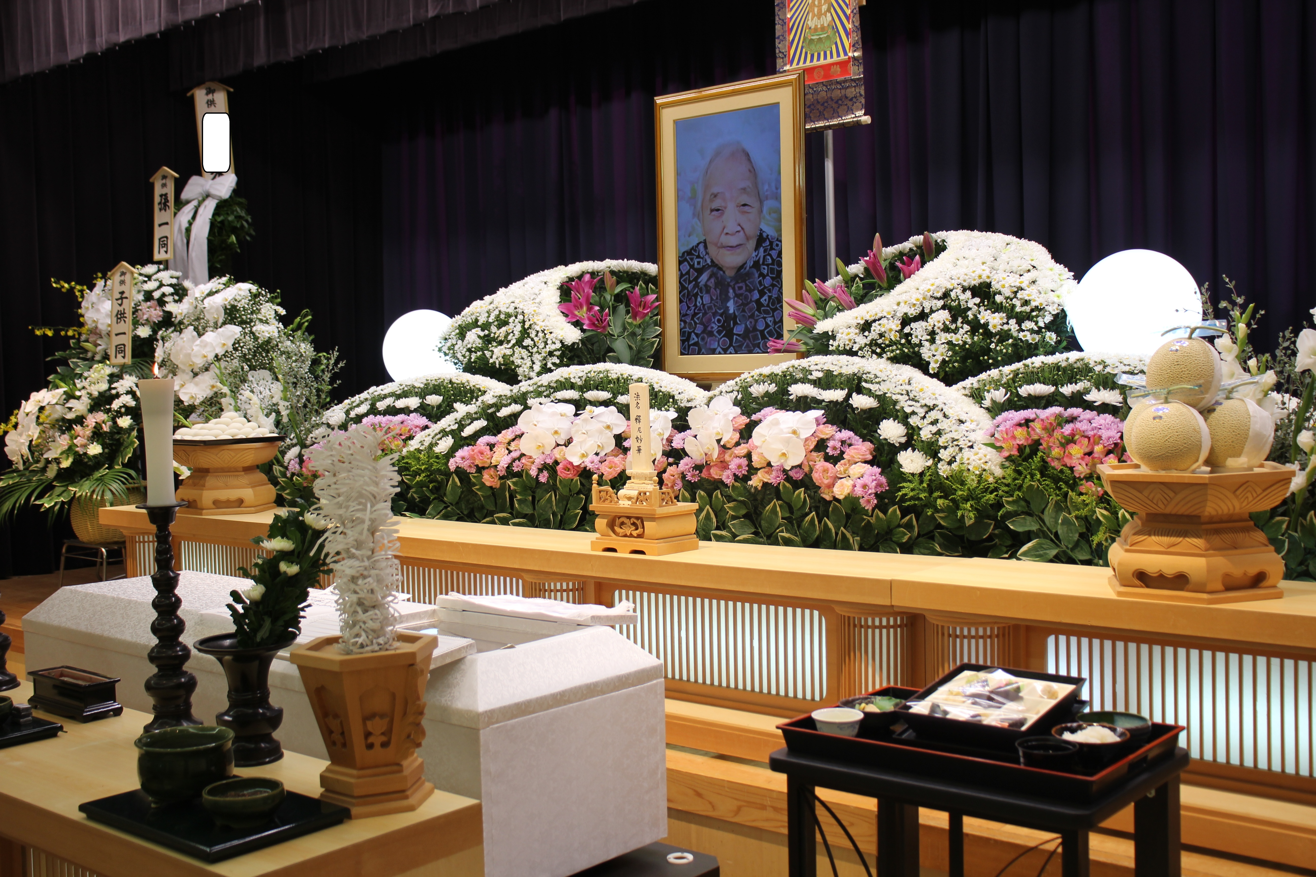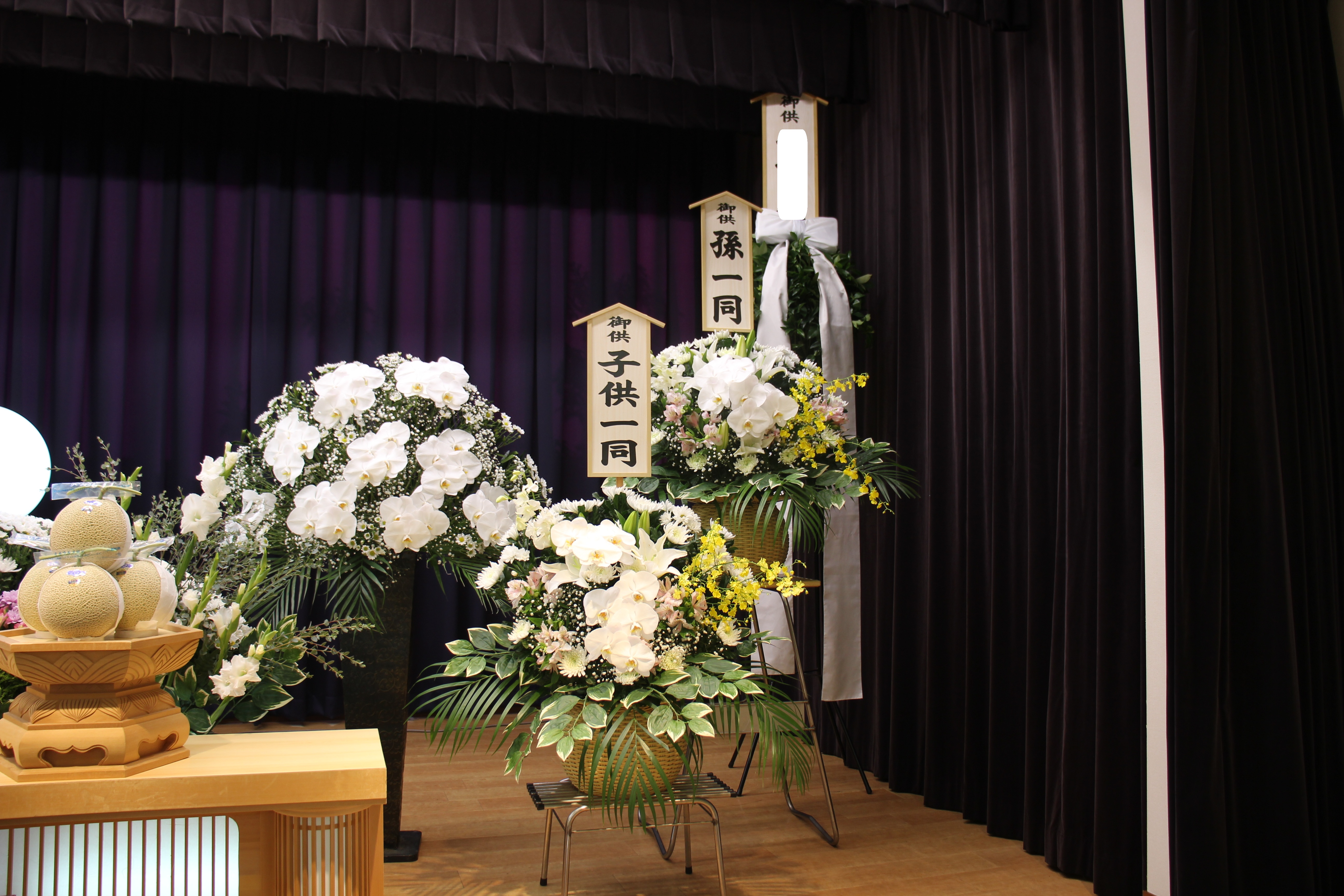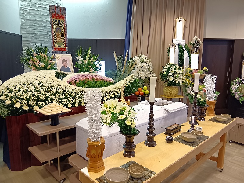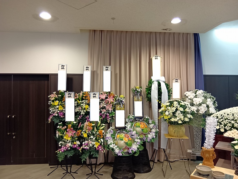 故人様を包み込む空間にはたくさんのお花やお供え式場が彩られます