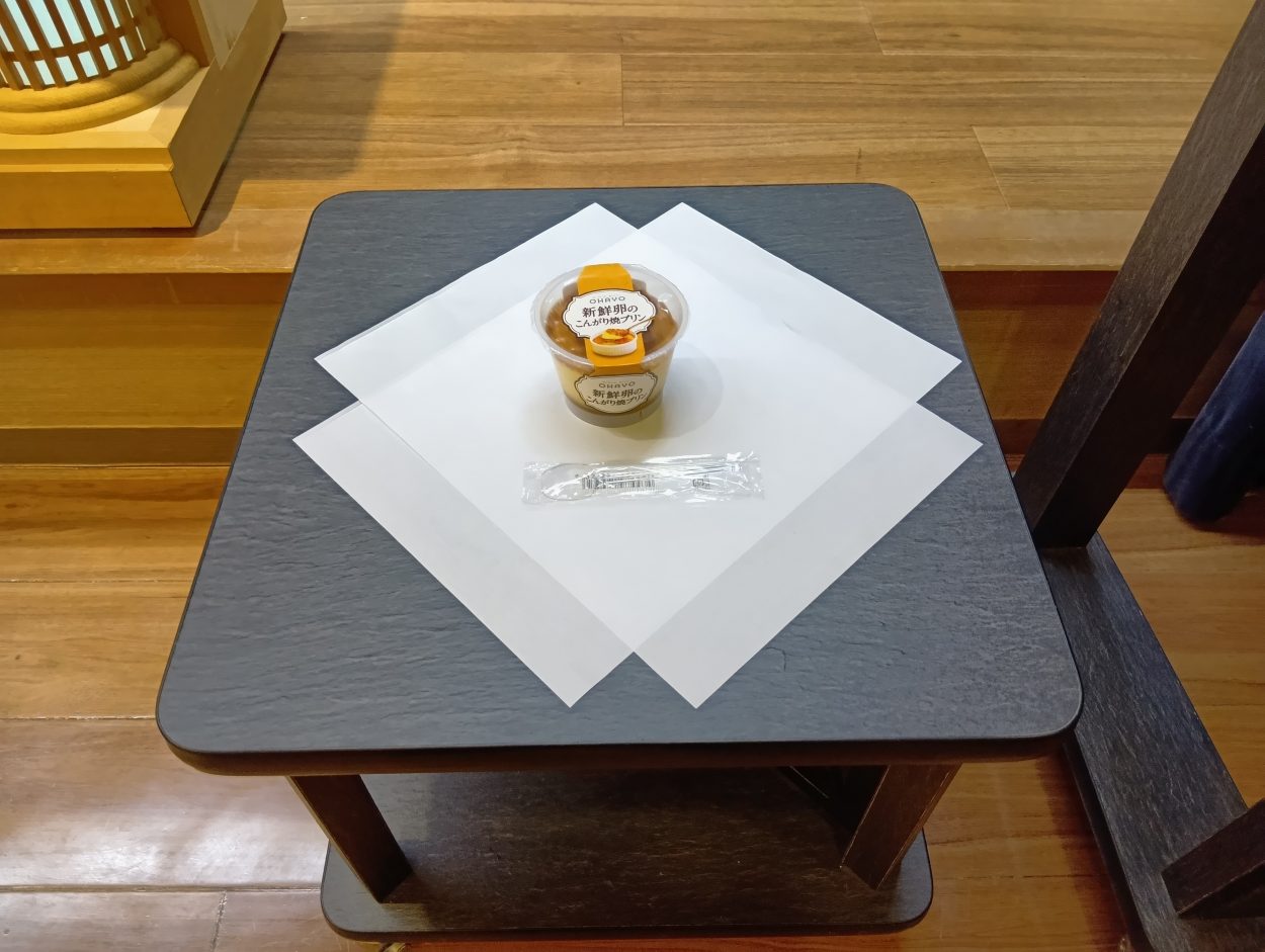 お棺のお近くにはお父様のお好きだったプリンをお供えさせていただきました