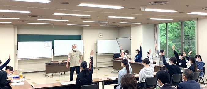 先生からの問いかけには全員が手を挙げ、意欲的に取り組みました。