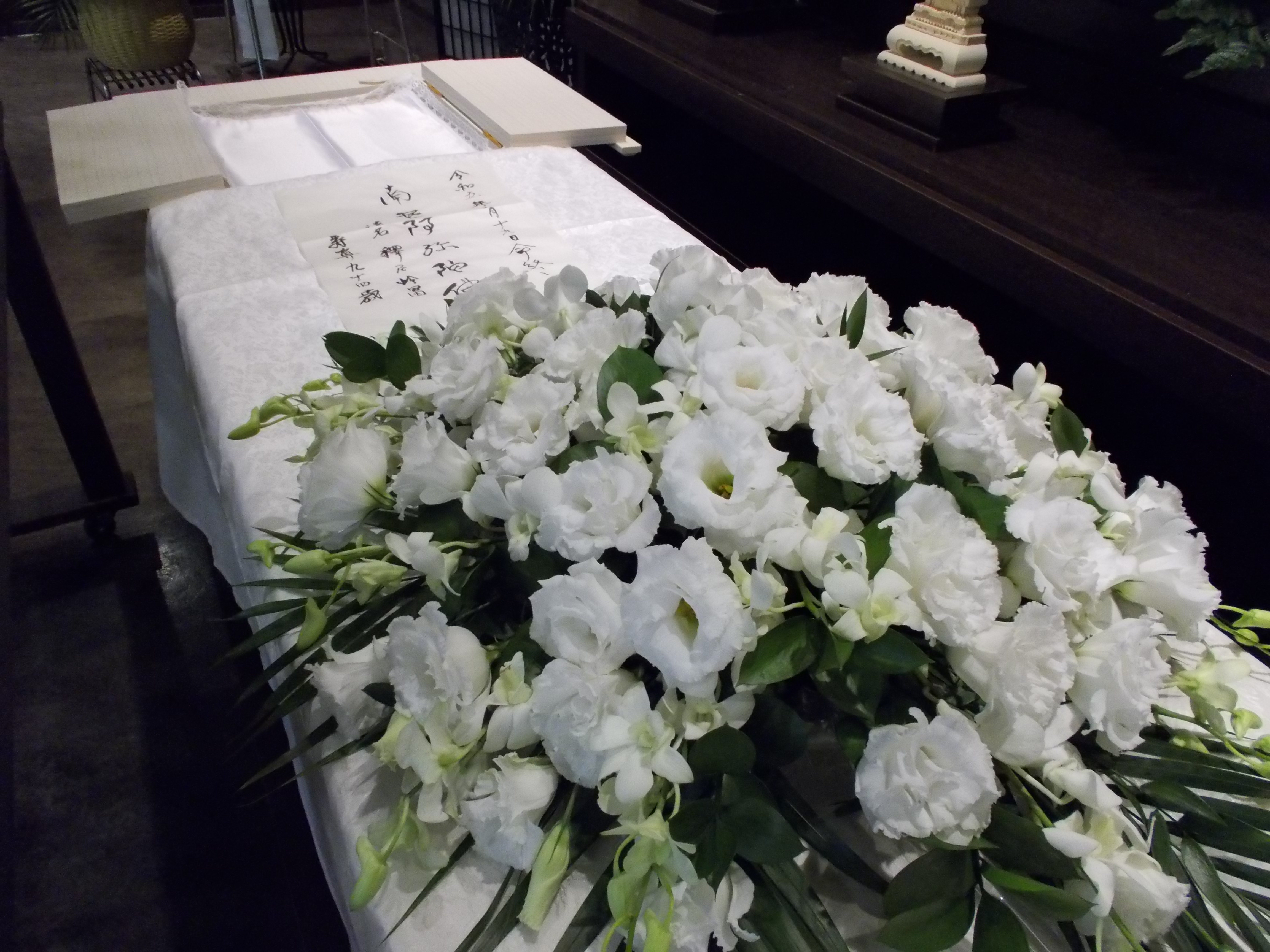 お棺の上には純白のキャスケットフラワーが手向けられました