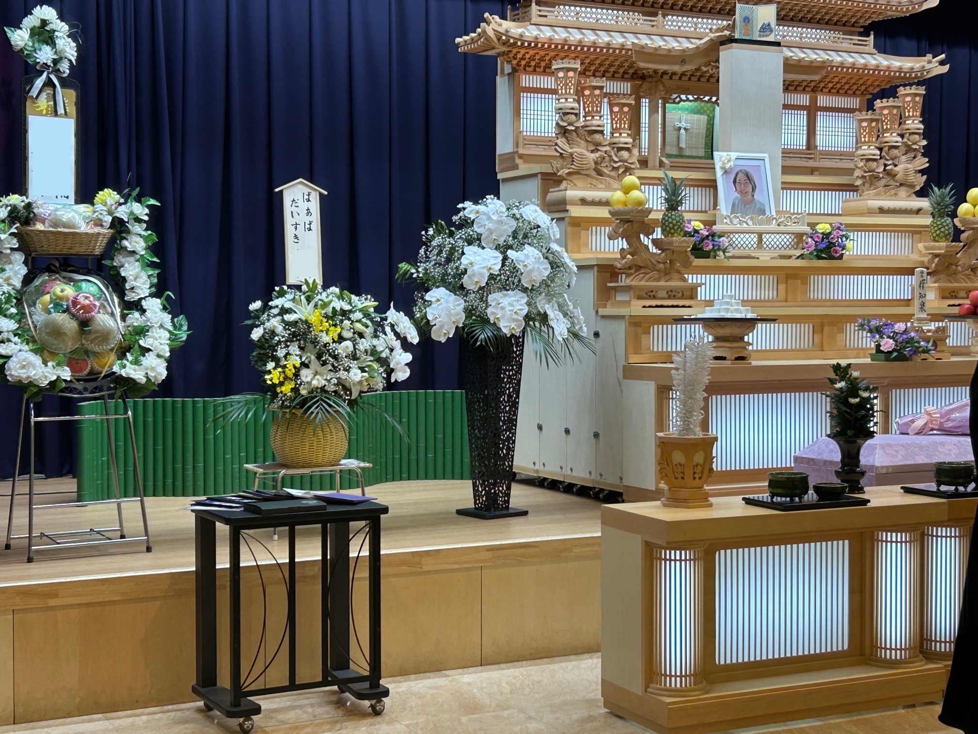 ご家族より、「ばあばだいすき」とメッセージを添えたお花が供えられました