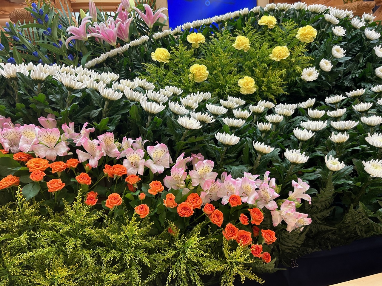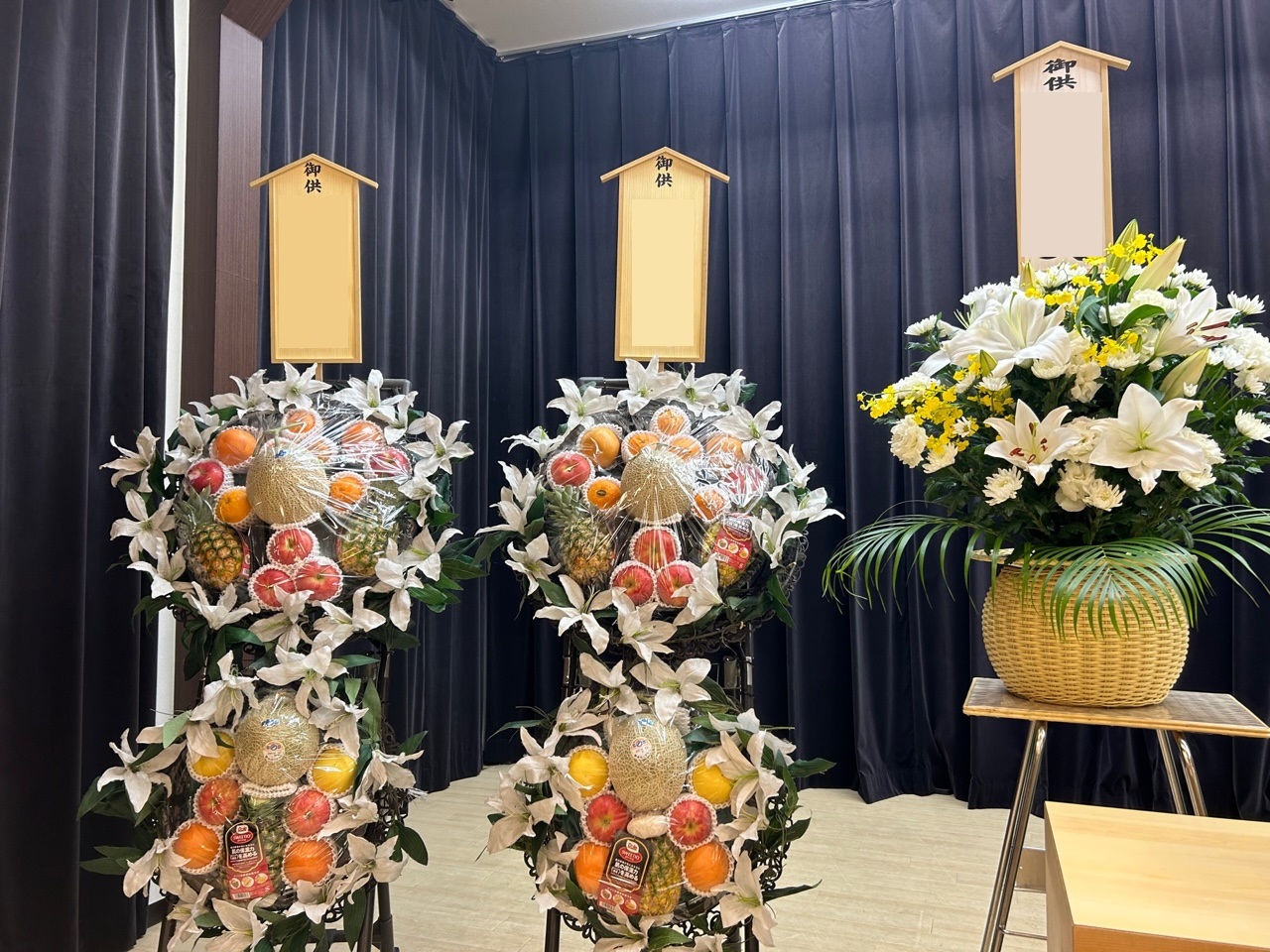 お疲れさまと、感謝と労いの気持ちを込めて皆様よりお供えをいただき、式場があたたかな雰囲気に包まれました
