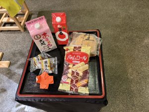 日本酒やお菓子が好きだったとの事で当家様よりお供えを頂きました