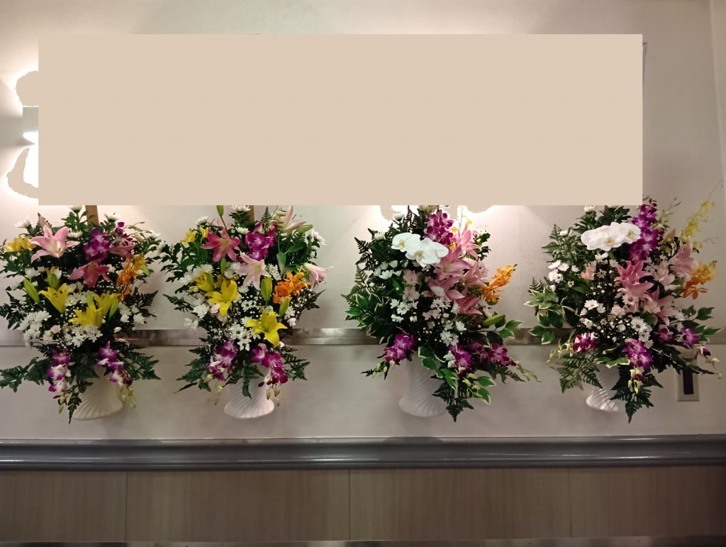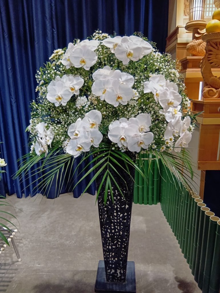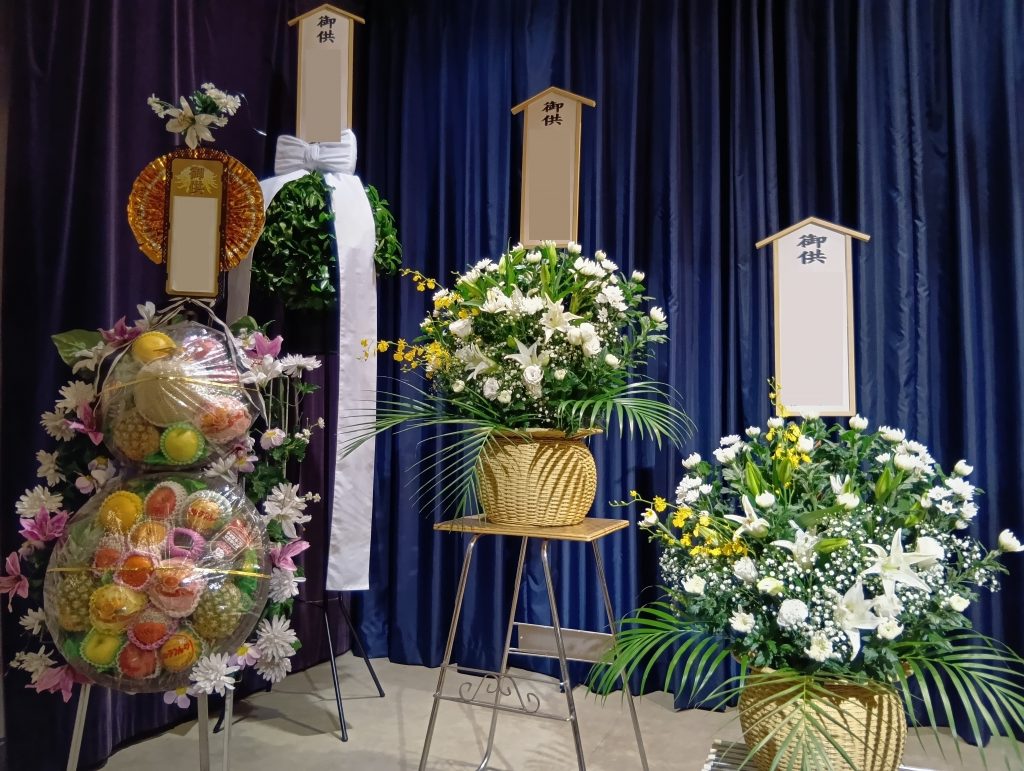 皆様からの沢山のお供えで式場が彩られます