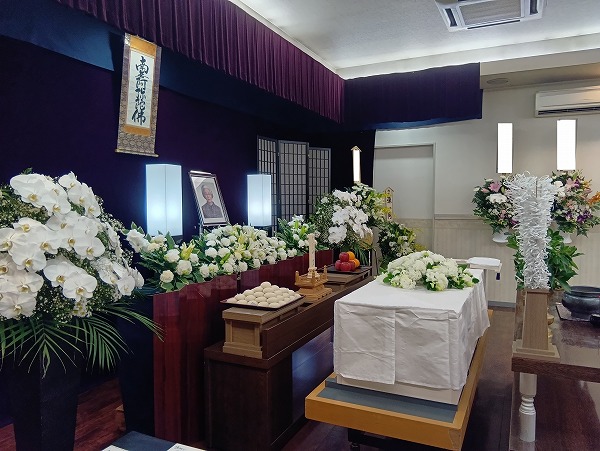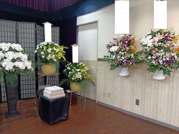 祭壇の横には喪主様から お花の贈り物...