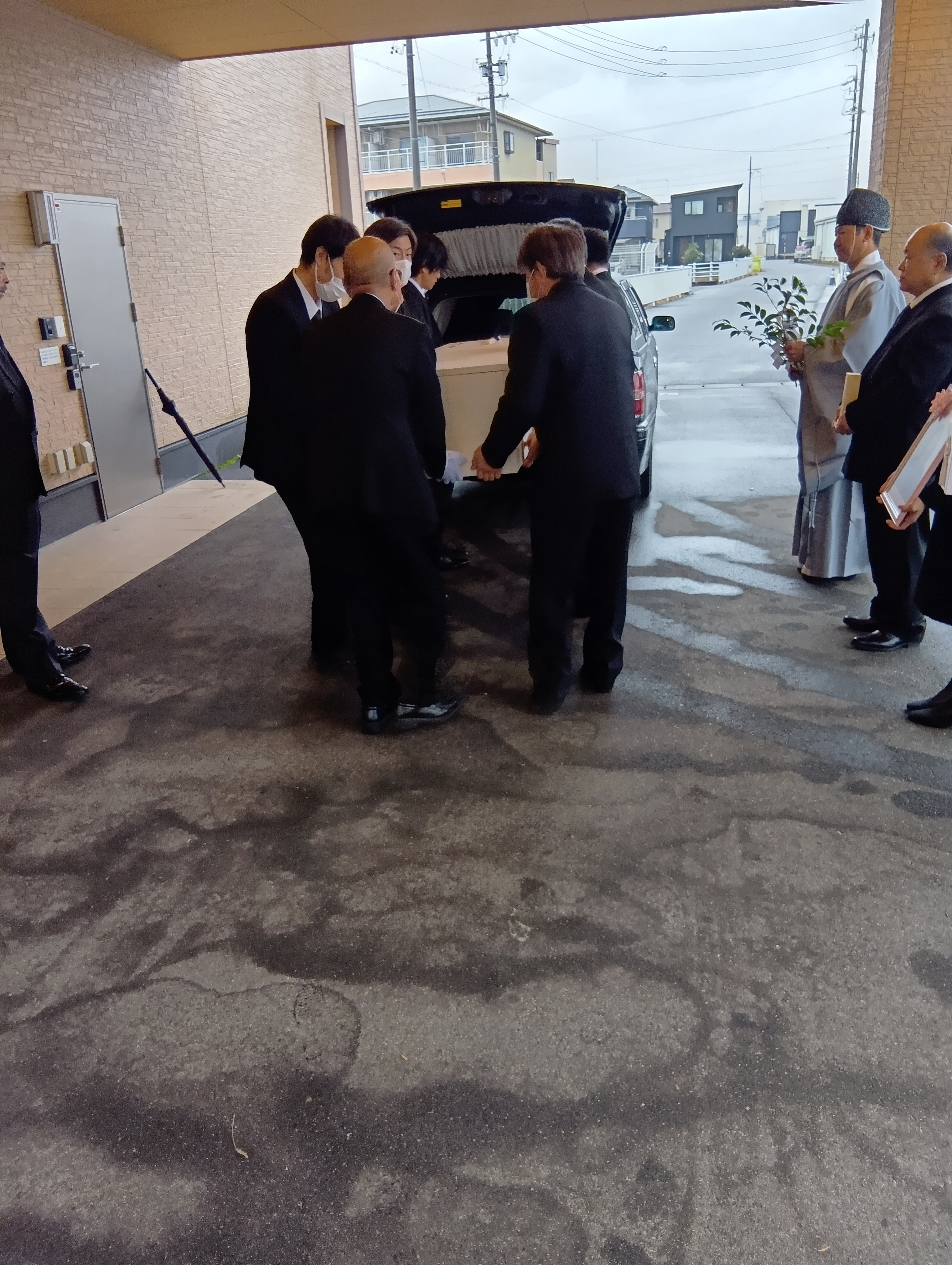 愛した皆様に抱かれ霊柩車へ、そしてご出棺・・・