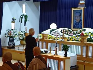 「今思えば、家族を支え頑張ってくれたその姿に感謝しかない」と喪主様。そっと手を合わせます。