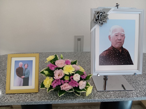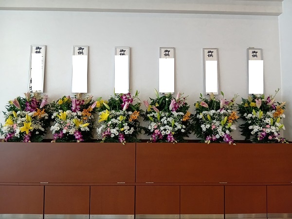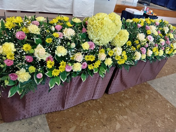 式場には皆様からたくさんのお花のお供えをいただきました