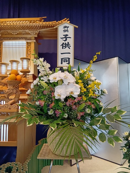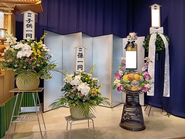 祭壇のお近くにはご家族様からのお花や果物のお供えを飾らせていただきました