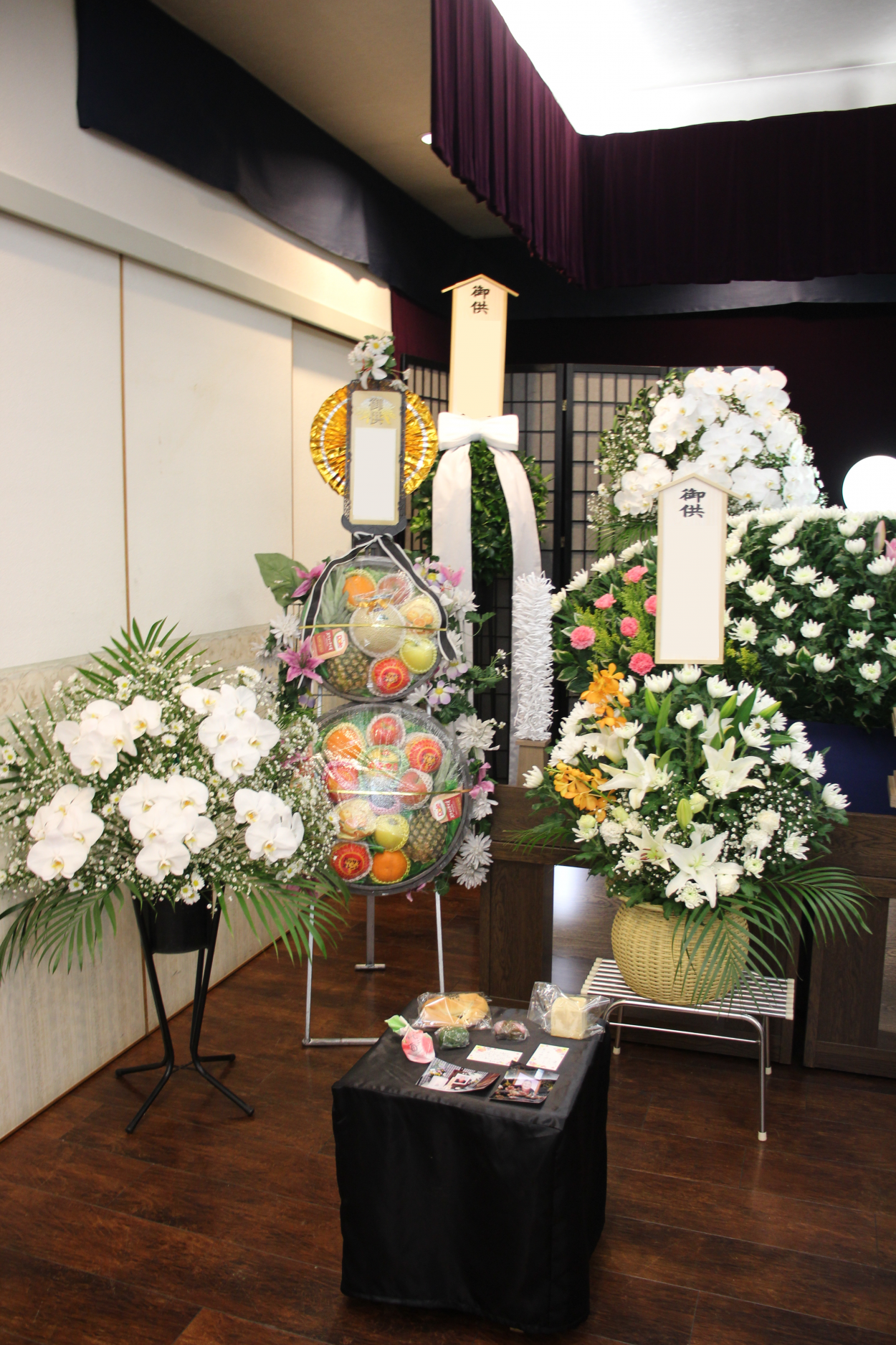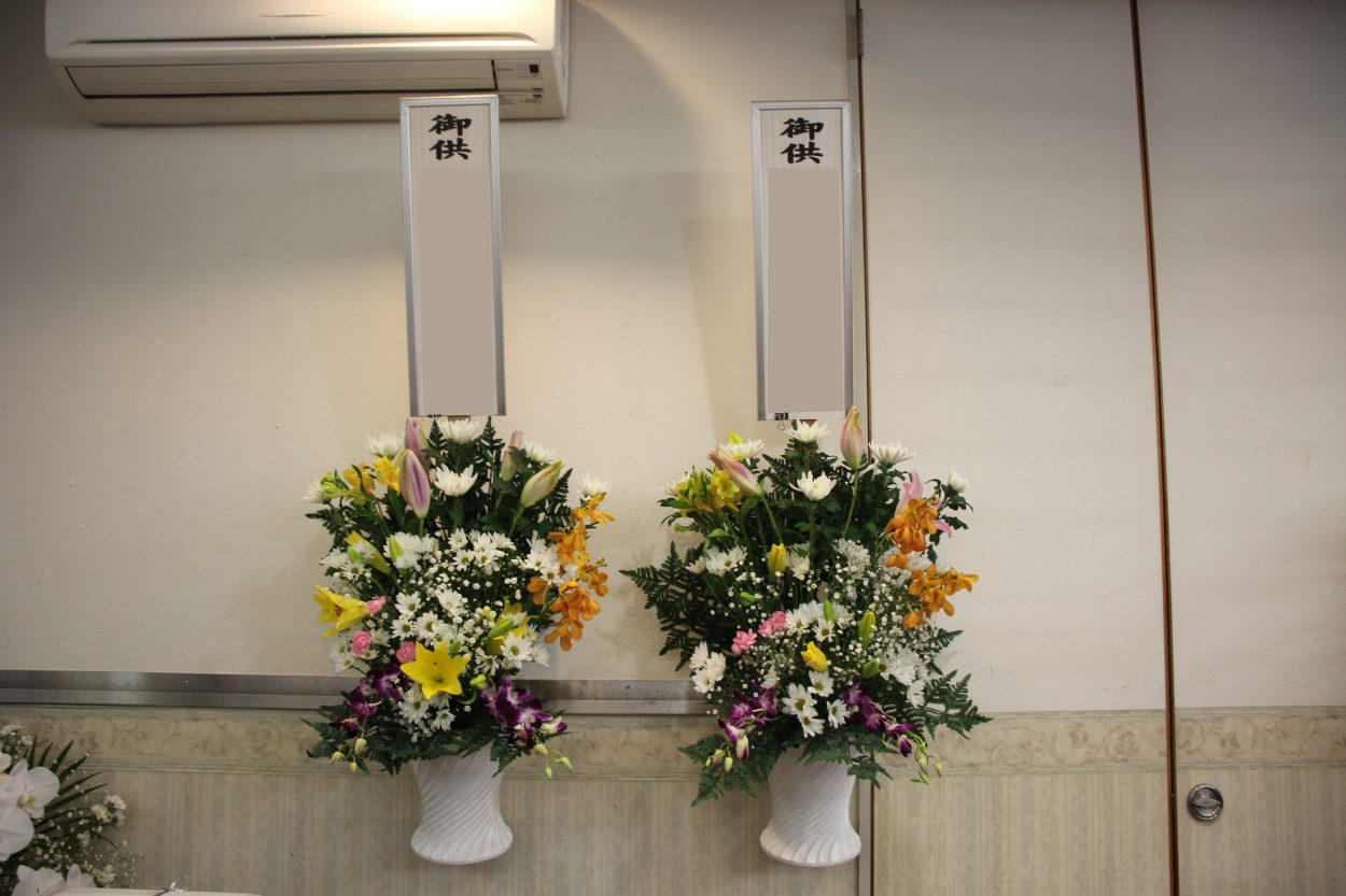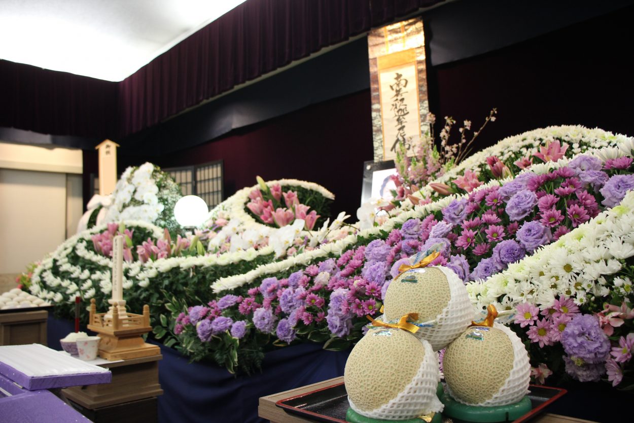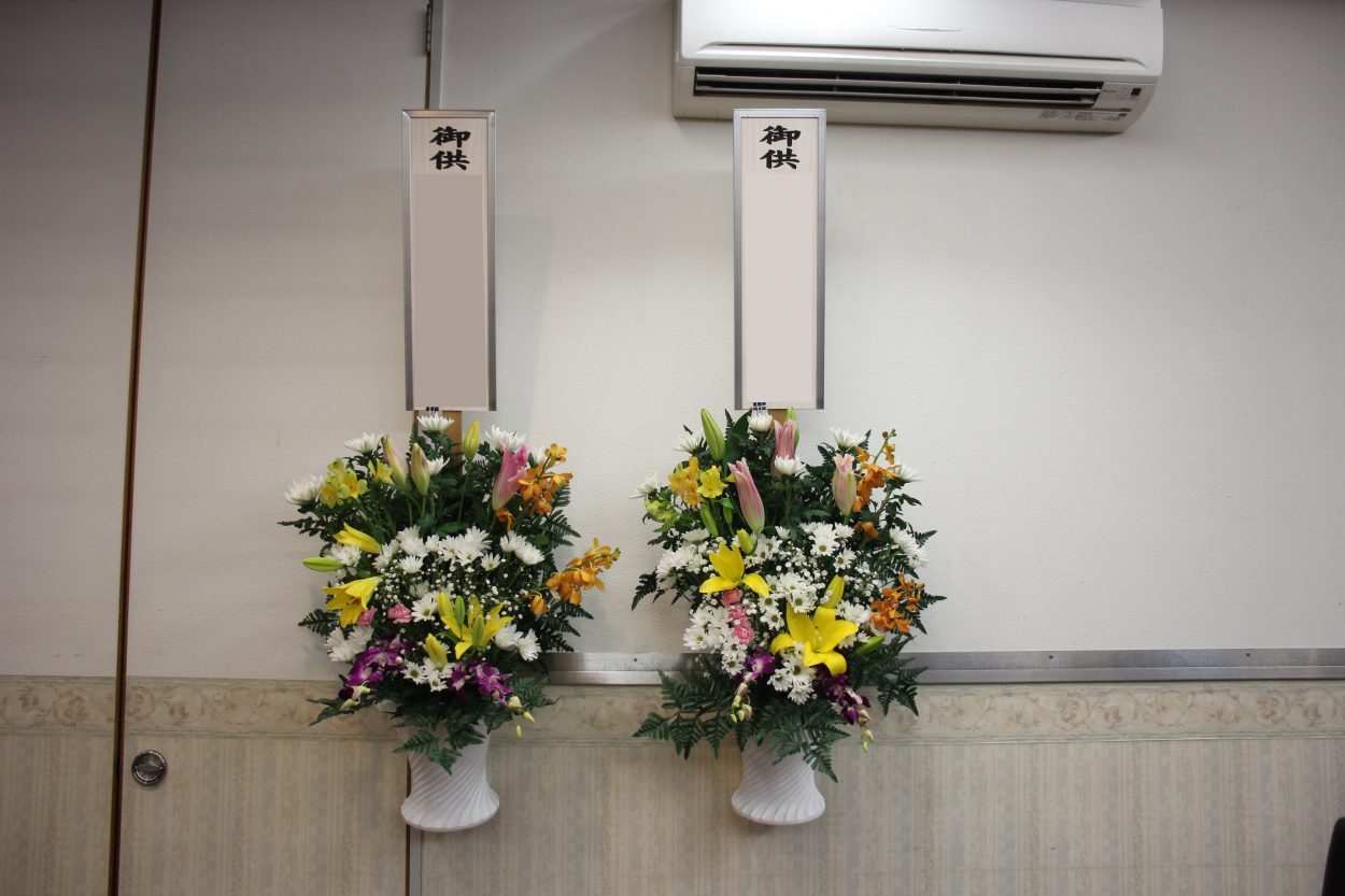 皆様からお供えいただいたお花で式場が彩られます